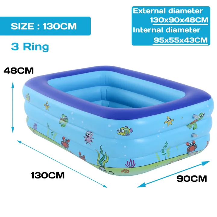 Inflatable Kids Pool 130CM – 3 Ring Baby Swimming Pool with Cartoon Design (130x90x48CM)